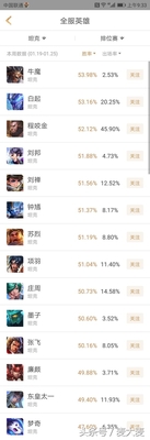 坦克位置倒是特别平均,大家绝大部分都集中在50%,牛魔和白起两位以53的胜率领衔,而梦琪的胜率出现了一个小断崖,东皇倒二有49的胜率而到了倒一的梦琪就只剩47了。