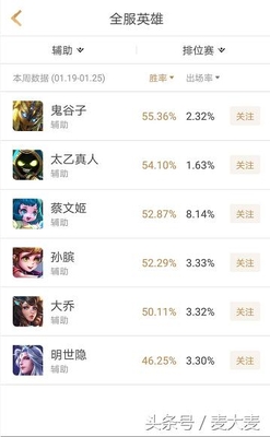 最后说说辅助位置 ,鬼谷子依旧占据第一的位置,明世隐自从上次的大削以后完全一蹶不振了,已经连续很长一段时间占据垫底的位置!