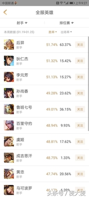 接着是射手位置 ,让我惊讶的是,在重做后被人惨骂的后羿,竟然是射手榜胜率第一的存在!果然后羿还是玩家们的真爱啊!而且出场率极为恐怖,竟然高达63.37,位列全联盟第一!反而是在职业比赛中经常出现的射手马可波罗胜率垫底,果然我们平时的玩法和职业比赛中还是大有不同啊。