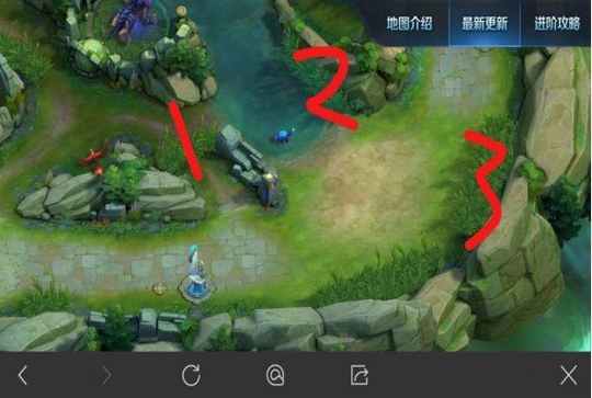 对于打蓝的打野,我们从1位置的墙进去,刮到蓝且对方没控(比如露露)就二段位移进去打沉默,如果没有就切重剑推过去,注意这个时候我们需要队友,没有队友你就是送人头