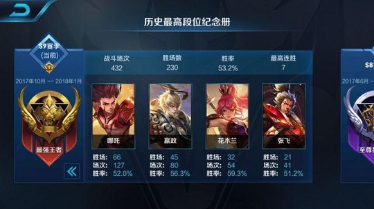 这个赛季,赛季初一直在钻石分段混,主要用哪吒和张飞,胜率居然50摩擦,木兰胜率更加感人,34!对的你没看错,我木兰在这个赛季刚刚开始我还没来的及适应的时候胜率只有34。一直到十二月才打上星耀五,在此期间我一直看斗鱼易安的直播,看他用木兰打到了区一,看托米直播被木兰打爆,看飞牛的木兰拯救世界,看大神观战里面木兰叱咤风云(其实赛季初木兰被苏烈白起夏侯梦奇打爆的比比皆是)……好吧,我心里面还是不服的