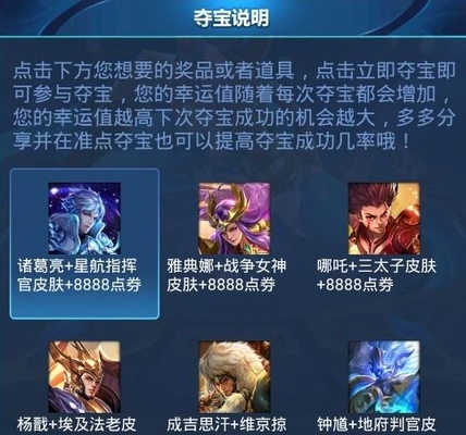 有不少第三方的抽奖平台,会进行一些抽奖活动,奖励物品中包含王者荣耀的各种道具物品,不过一般情况下官方授权的抽奖最多只可能有一个永久英雄和皮肤,而且几率低的可怕。很多虚假的抽奖基本都是必中英雄皮肤,或者三次抽奖机会,最后一次必中等。有不少的虚假抽奖都会要求先进行会员充值或者类似购物获取抽奖资格等。