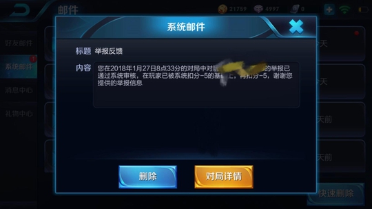 有一次举报后系统提示该名挂机玩家将做出扣10分的处罚。