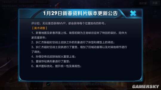 同时对地图进行了美术调整,更加应景新年的气息,并且对一些英雄的模型和皮肤进行调整。