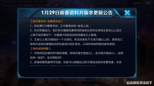 1月28日,《王者荣耀》官方发布公告,表示将会对游戏进行停机更新,时间为1月29日0:30至1月29日9:30,本次更新为大版本更新,是为了迎接即将到来的新年。