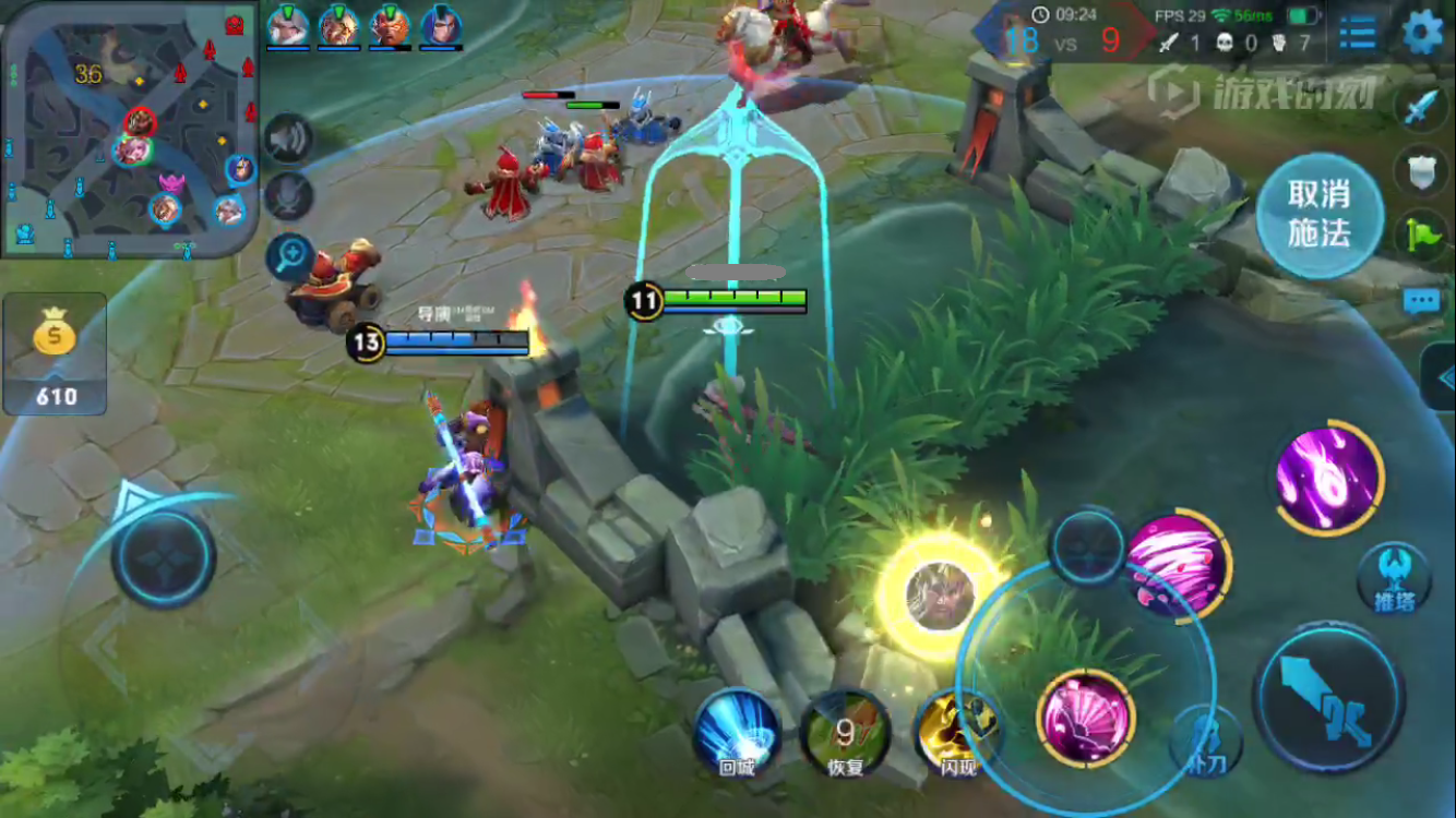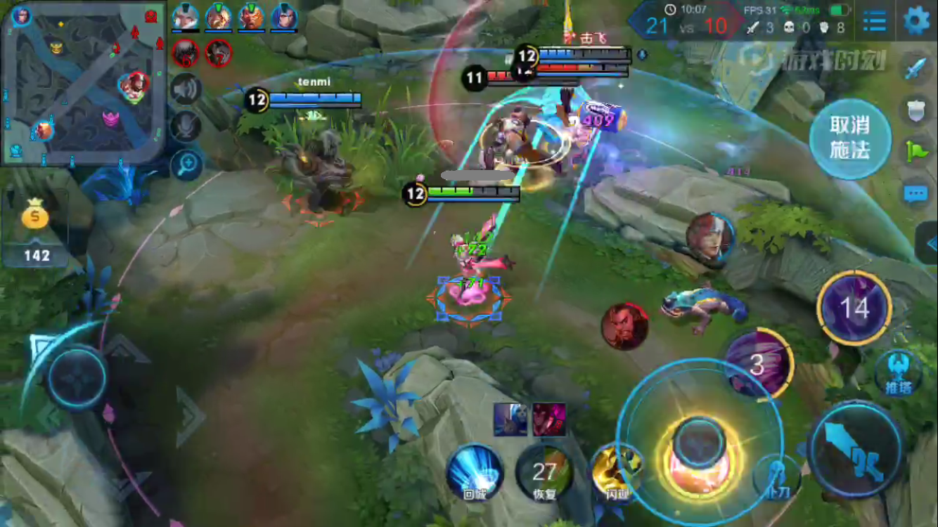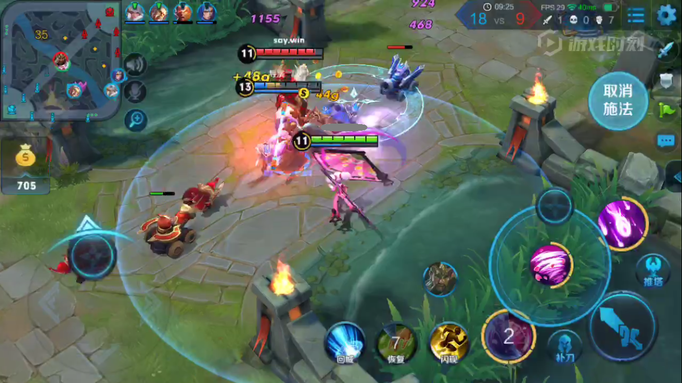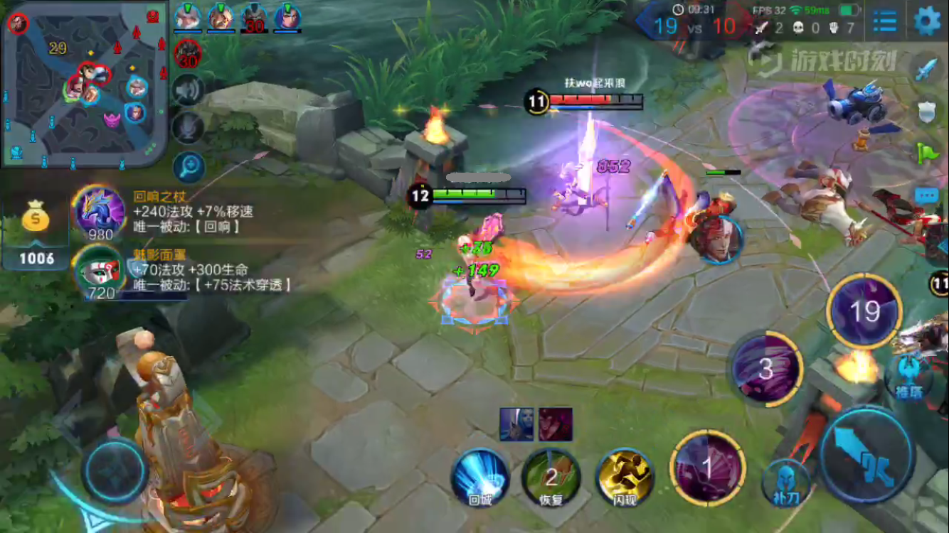 中后期小规模团战,清理完兵线之后利用疾步之靴第一时间赶到战场。利用扇子多消耗敌人。