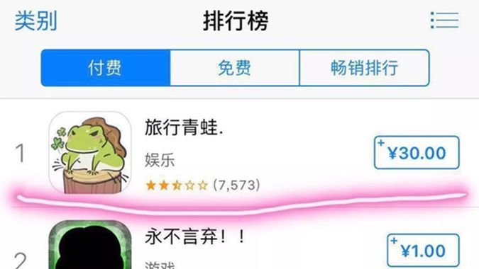 不知最近有没有听说过或者正在玩着一个叫《旅行青蛙》的游戏,我也不知道为什么这个游戏突然就火了。然后App Store上就出现了一个叫《旅行青蛙》的游戏。是的,这个游戏并不是苹果版的《旅行青蛙》,而是一个类似于跳一跳的青蛙游戏,最骚的是标价30元。