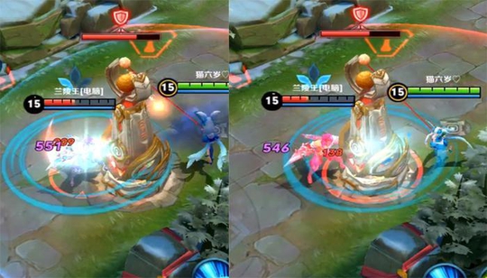 另外技能释放时还出现了一个bug动作,如上图我们是朝左上方移动时释放反向技能,但是二哈在释放技能时有短暂的转身动作,并且保持后退移动。技能释放时还会出现例如高渐离技能一般的滑行硬直,而原本的技能是可以直接释放不影响走位,可以说是名增暗削了。