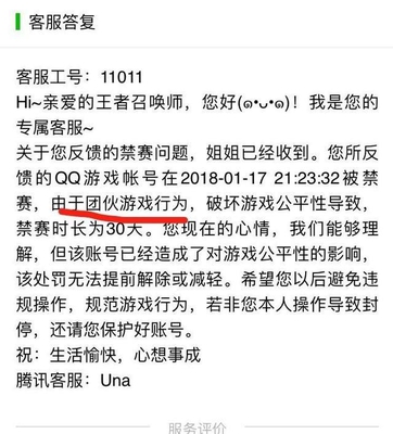 这是客服的回复信息,不但没有给妹子一个合理的解释,而且还给平白无故扣上了一顶团伙游戏行为的帽子,说白了客服就是想告诉你:你团伙代练了!