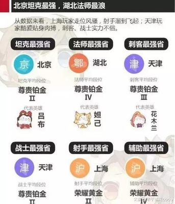 按照省份来划分的话,上海地区的玩家的王者荣耀的水平稳居全国第一,平均段位在黄金I 4星。其次省份为河北、北京、天津和浙江,平均段位均在黄金I,而其他省份基本都在是黄金II水平。