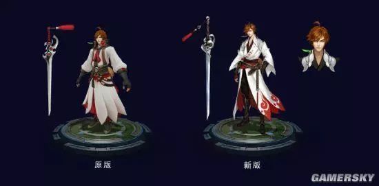 为了强调李白不羁的浪子形象,新版李白在体型上更加高挑潇洒,减少了复杂赘余的大块装饰,在细节上增加精致度,而整体视觉显得更为轻盈。
