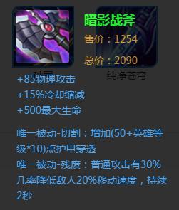 讲解:适合半肉的战士,或者想要出半肉的刺客,团战时作用较大,有人说孙膑出暗影战斧很阴险,你们可以试试。
