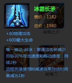 讲解:靠攻速的英雄可以考虑首选这件装备,30%的减速可以让你不管追杀还是逃命还是留人都有很不错的效果。