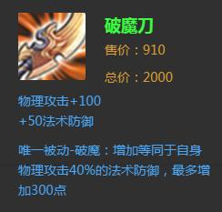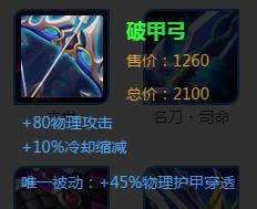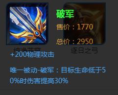 讲解:物理加成最高且最贵的装备,没有之一!一般都在最后两件出,不然前期会拖装备,适用于有很多钱的物理选手,吕布出破军真的很厉害。