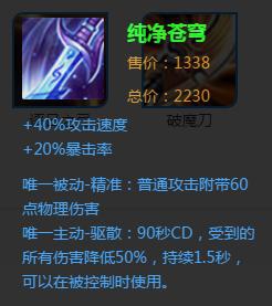 讲解:装备自带的主动技能相当于多了一项技能,可以在被控制时使用,虽然不能解控,但可以降低50%伤害,如果敌方控制型英雄较多时可以出一件。