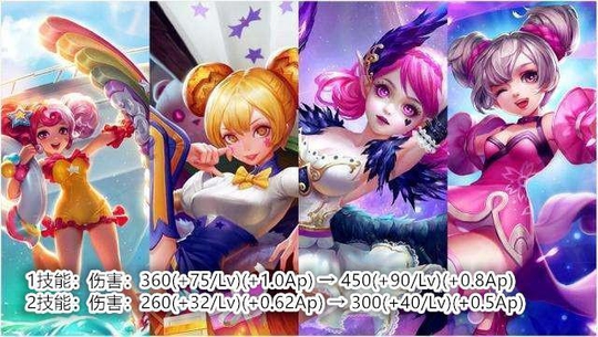 回调了之前的基础伤害提升,并转向了加成伤害提升的BUFF方向应该算是一个微微的加强吧,毕竟刚出皮肤没多久。