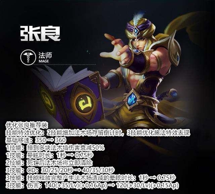 张良算是5个英雄中唯一一个被削的英雄,3个技能的伤害和眩晕时间都被削了,而加强的地方就是移动速度稍微增加一点,还有就是优化2技能增加法术场存留倒计时,3技能优化施法特效表现。