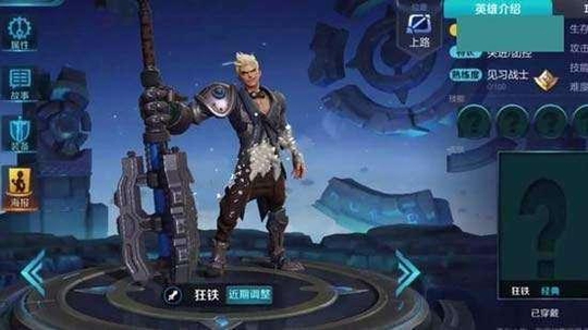狂铁,定位战士,特长是突进/团控。从形象上看,狂铁和夏侯惇十分相似。应该是一名偏坦克、具有位移和范围控制技能的战士英雄。