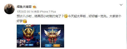 而之前40多个小时上王者的大锤哥,通过一个赛季的锻炼,这个赛季第一天就上到了王者,而且只要四个小时,大锤哥的实力也在慢慢的在进步.