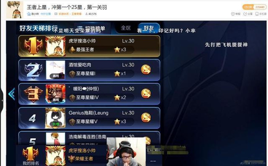 洛小帅不仅早早的上到了王者,而且还定了个目标,能够第一个人冲上王者25星,看来一日上王者还是满足不了这些主播的野心了.粉丝:能带我上车吗?
