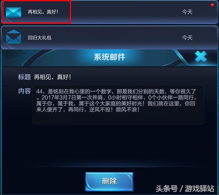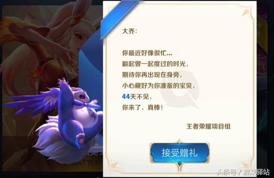 信中包含了玩家的ID、未登录时间和接受礼物选项,比如小编44天未登录:
