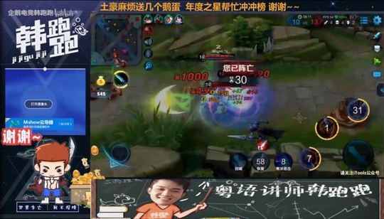 王者荣耀:主播韩跑跑猴子化作泉水指挥官,带领黄忠拿到五杀!