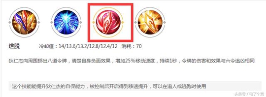 二技能,相当于召唤师技能中的净化,能清除自身负面效果,并且增加移动速度!
