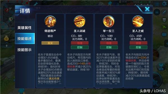 提升老夫子的移动速度并可以反弹敌方的普通攻击且使老夫子在技能生效时间内具有一定的免伤效果,可谓一技多用,是老夫子承受团队伤害、追击敌人、逃跑的重要技能。
