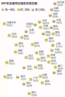 全国白领平均年终奖总体均值7278元,较去年有所降低。大家看看你所在的城市,再看看你能拿到的年终奖,是开心呢还是拖后腿啦~