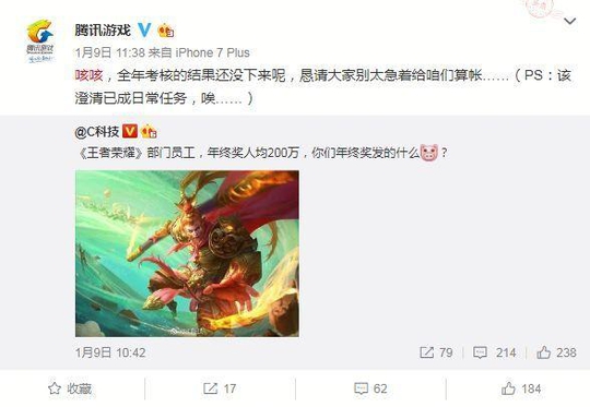 按照早前的数据,2016年王者荣耀全年收入68亿,2017年上半年收入148亿来看,这些上百个月工资作年终奖的事情不是没有可能!