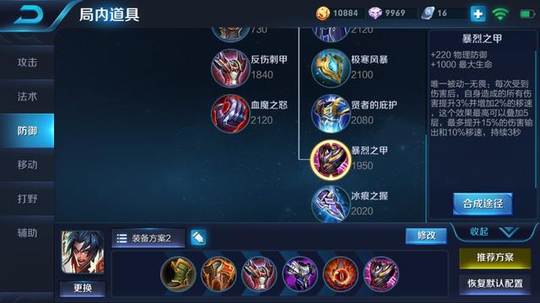 出装:护甲鞋→红莲斗篷→反甲→霸者重装→不死鸟之眼→爆裂铠甲