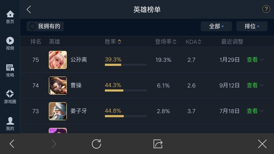 王者荣耀的平衡一向为大家所诟病,虽然小编玩得比较久,还是蛮喜欢这个游戏的,但是也不得不说,平衡实在太渣了,一个moba游戏里面,最高胜率和最低胜率能够差距在20%左右,可能也就只有王者荣耀了。