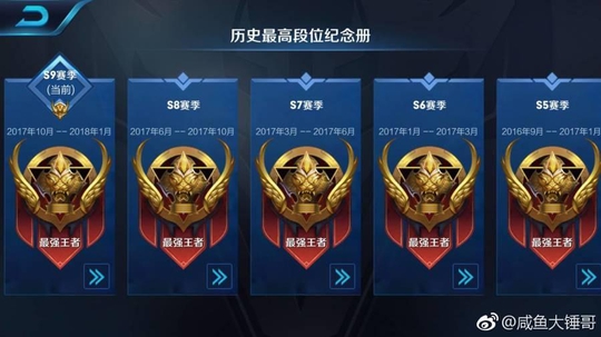 是时候表演真正的技术了!随后大锤晒出自己之前的几个赛季段位,都是王者段,原来大锤是技术型主播,很多网友都是因为大锤主播很幽默风趣,才路转粉的,没想到大锤晒出自己战绩的这一瞬间,又让自己的形象上升了一个层次,看来大锤是技术娱乐型主播!