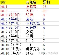 哎,为啥并列的这么多?小编我是万万没想到居然新英雄公孙离能上榜,然而王昭君虽然在古代是四大美女,但是这妞平时是声名不显...我以为咋地也的是貂蝉或者是妲己第一名...然而妲己居然没上榜?!什么鬼...