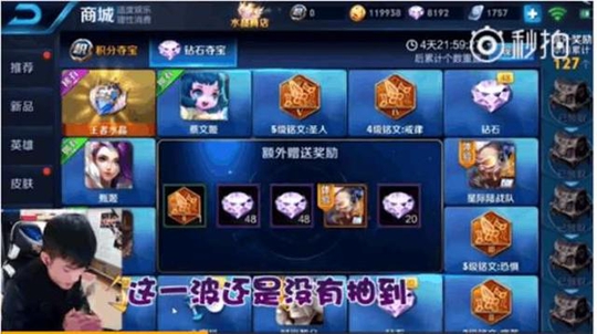 韩跑跑作为新锐主播其实力之强很多人都是知道的,不过还有一样就是他的运气也是很好的,不然怎么能钻石夺宝十抽中四个王者水晶呢?