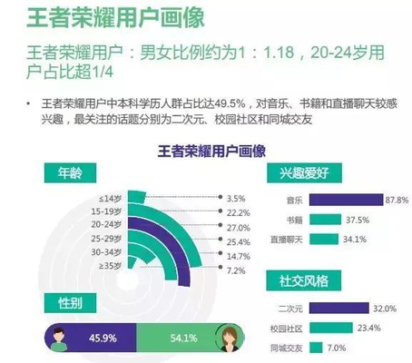 据极光数据2017年中报告显示,《王者荣耀》女性用户占总用户群体的54.1%,30岁以下用户占总用户近80%
