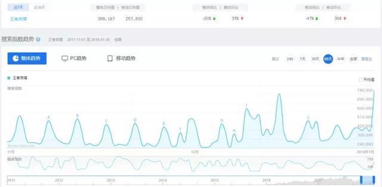 百度指数显示《王者荣耀》近三个月的话题指数,其中近期话题整体环比仍有上涨趋势