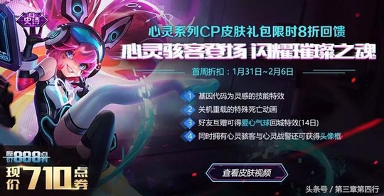 心灵系列的心灵骇客和心灵战警皮肤,只有首周才有折扣,想买的抓紧时间(⊙o⊙)哦,虽然上次小编说了安琪拉心灵骇客皮肤有点小问题,但是天美很快就会更新的,大家放心!
