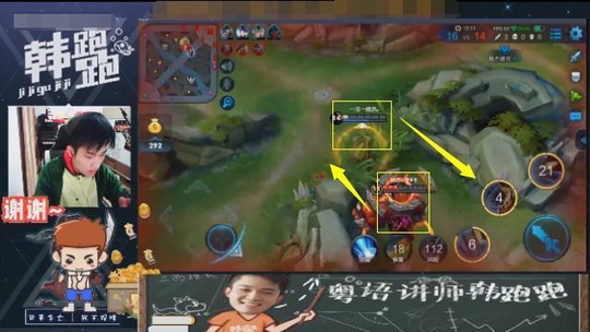 在一波追逐战中,残血的韩跑跑先进了草丛。后面的张飞习惯性的认为韩跑跑往前跑,一个2技能就往前砸。但韩跑跑一个走位直接往回走溜了,反向逃跑村长只服韩跑跑。