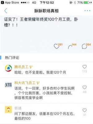正当我们觉得100个月的工资奖励不可信时,一位腾讯加V认证的员工跳出来了。他说自己的奖金,其实不是100个月,而是120个月。