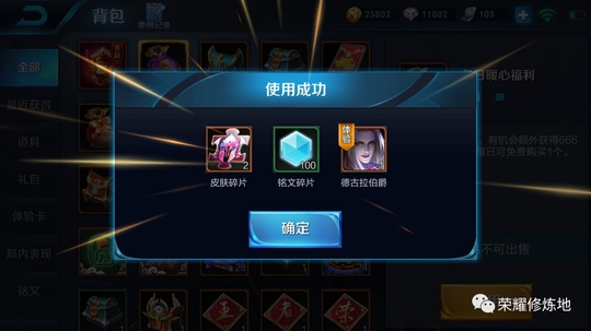 打开礼盒必得两个皮肤碎片、100符文碎片和一款史诗/传说皮肤体验卡。本次礼盒内包含的四款皮肤分别是鲁班的电玩小子、刘邦的德古拉伯爵、韩信的白龙吟和吕布的末日机甲。