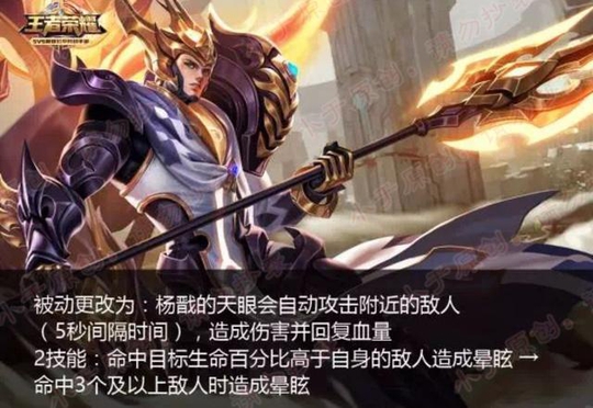 既然有新皮肤上线,所以一般来说总会伴随着一波小的加强,要不然那皮肤的销量肯定就...所以昨天体验服突然更新了一波,杨戬被重做,被动直接变成五秒一个大招;二技能变成命中三人即可控制眩晕~