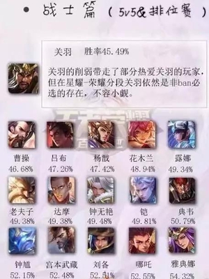王者荣耀:所有英雄的胜率都在这里,看看你喜爱的英雄在什么位置