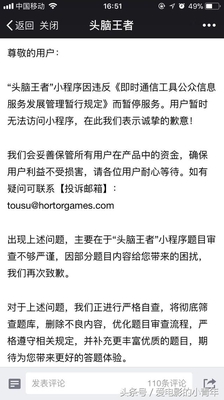 小程序“头脑王者”下架,网友:一点都不冤,该!马化腾