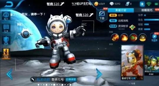 接下来是鲁班这个小学生的皮肤了,其实我个人觉得吧,鲁班这个太空服外形设计的还是可以的,但但这个面罩方面能不能优化一,换成蓝色的棒!整体来说皮肤设计的很惊细。2月20日左右会上架荣耀商店,又是一波土豪才能参与的皮肤了,到时候大家管住自己的零花钱啊!