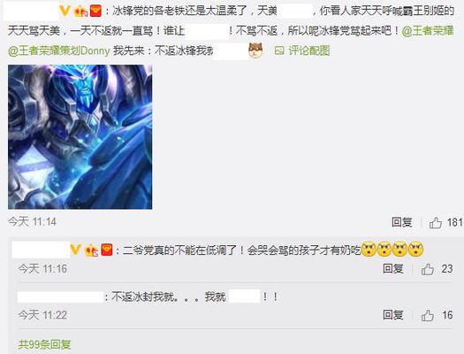 因为之前传出了天魔缭乱和霸王别姬返场的消息,所以投票排名第四的冰锋党直接怒了,在评论区已经开战,支持率稳居第二,会哭的孩子不挨饿,这句话绝对是真理。