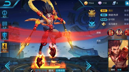 2、哪吒:哪吒是战士英雄中最强的英雄,能打能抗,哪吒大招的稳定切后排让哪吒具有其他英雄无与伦比的支援和切后排能力。