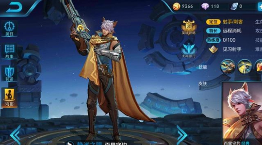 4、百里守约:这个英雄高爆发,高消耗再加上自保能力十足和视野控制能力十足,让百里守约在排位中非常强势,中后期2炮带走一个脆皮的情况屡屡皆是,现在高端局中百里也是非ban必选的英雄。