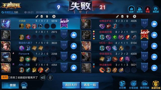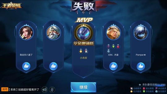 虽然小衣叔很希望天美能够让败方MVP不掉星,但是给大量勇者积分无非也是一种鼓励。这个游戏技巧水平先不说,心态特别重要,逆风的时候心态更加不能炸裂,需要守好水晶,抓紧发育,不轻易主动发起团战,慢慢拖到后期,无论之前哪一方占优势,但凡有一丁点失误输掉了团战,战场上就可能发生天翻地覆的变化,大后期赢一次团战,很可能会就此翻盘,所以千万不要像这局中的姜子牙一样,选英雄时候就破罐破摔,更不要像扁鹊一样逆风就挂机,保证好的心态,大家上王者指日可待。