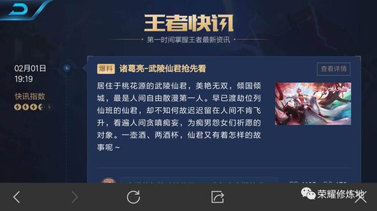 2月份王者荣耀将会上线很多新皮肤,相关的消息玩家们应该也都看了不少,因为皮肤太多所以最快上线的是哪款皮肤谁也说不准。但是天美在游戏中的社区给出了玩家答案,新皮肤武陵仙君的爆料页面显示“2月6日上线”,随后改为“即将上线”。